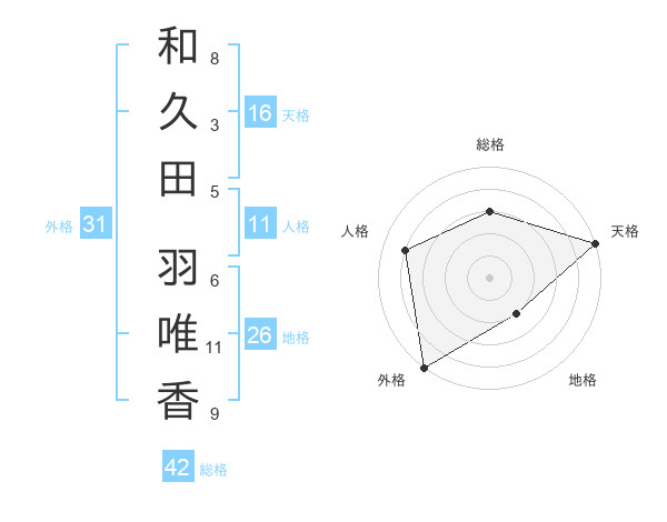 和久田 羽唯香さんを姓名の画数から五運を鑑定