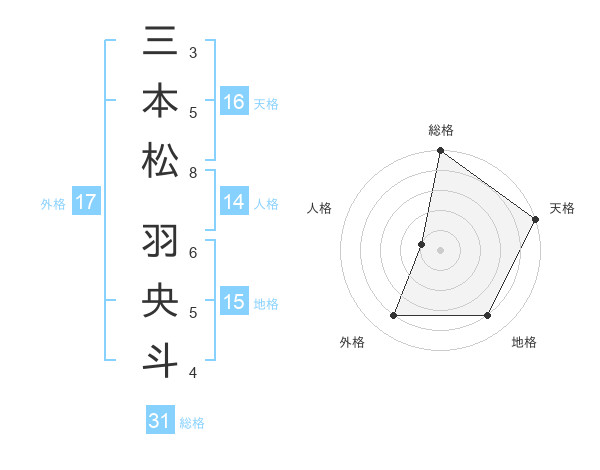 三本松 羽央斗さんの総格は31画の5点!