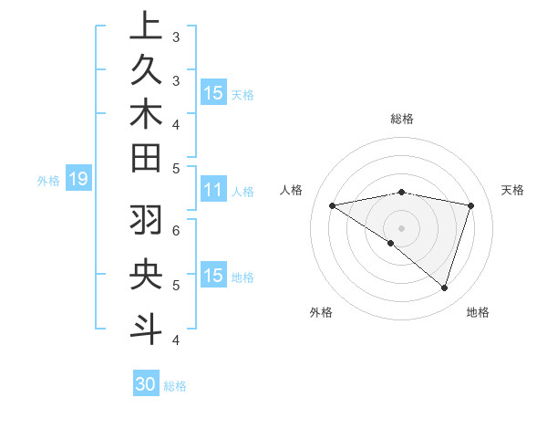 上久木田 羽央斗さんを姓名の画数から五運を鑑定