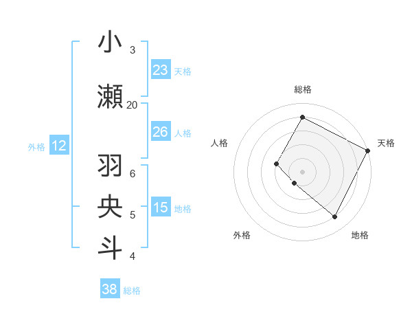 小瀬 羽央斗さんの天格は23画の5点!