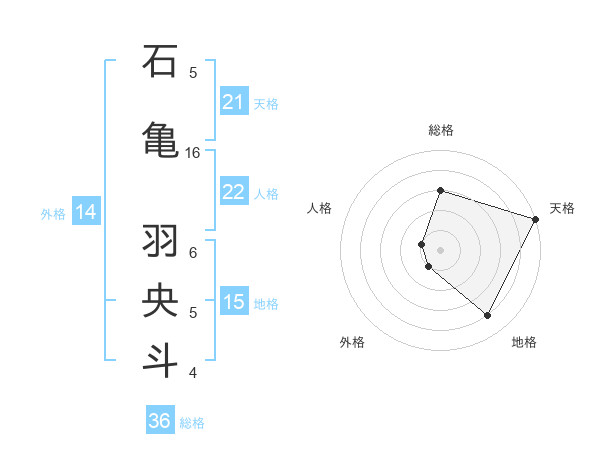 石亀 羽央斗さんを姓名の画数から五運を鑑定