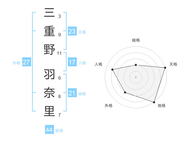 三重野 羽奈里さんを姓名の画数から五運を鑑定