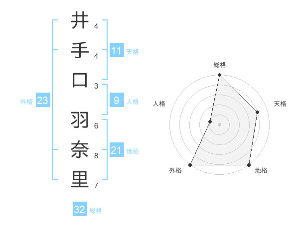 井手口 羽奈里さんを姓名の画数から五運を鑑定