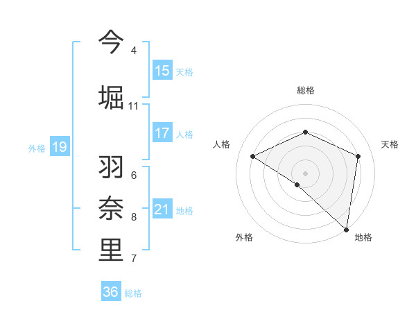 今堀 羽奈里さんを姓名の画数から五運を鑑定