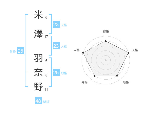 米澤 羽奈野さんの天格は23画の5点!