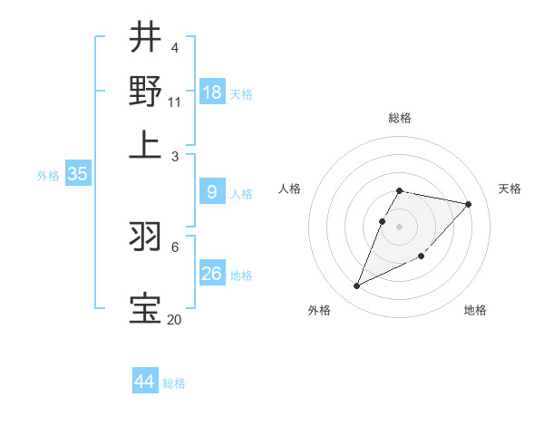 井野上 羽宝さんの総格は44画の2点!