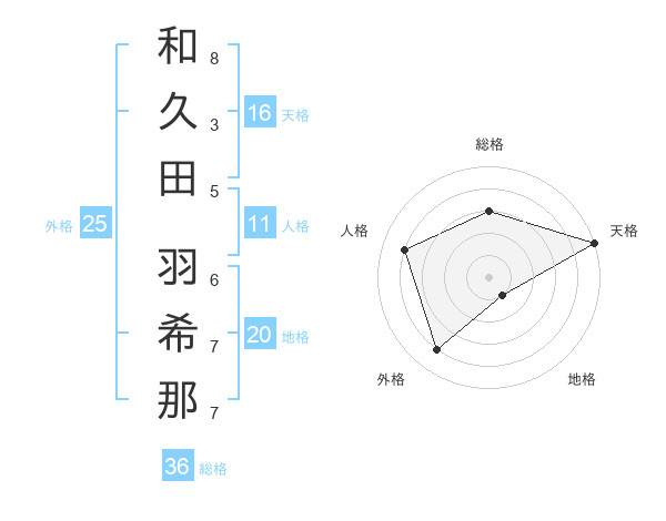 和久田 羽希那さんを姓名の画数から五運を鑑定