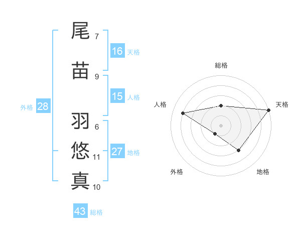 尾苗 羽悠真さんの総格は43画の2点!