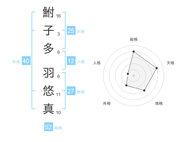 鮒子多 羽悠真さんを姓名の画数から五運を鑑定
