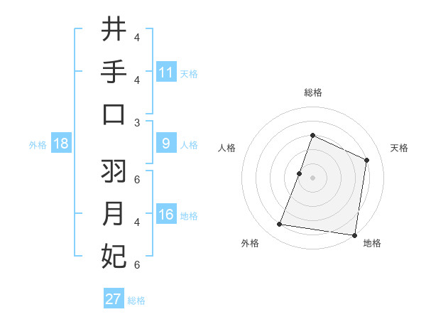 井手口 羽月妃さんを姓名の画数から五運を鑑定
