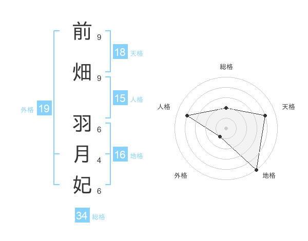 前畑 羽月妃さんの天格は18画の4点!