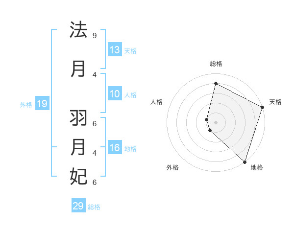 法月 羽月妃さんを姓名の画数から五運を鑑定