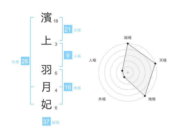 濱上 羽月妃さんの総格は37画の5点!