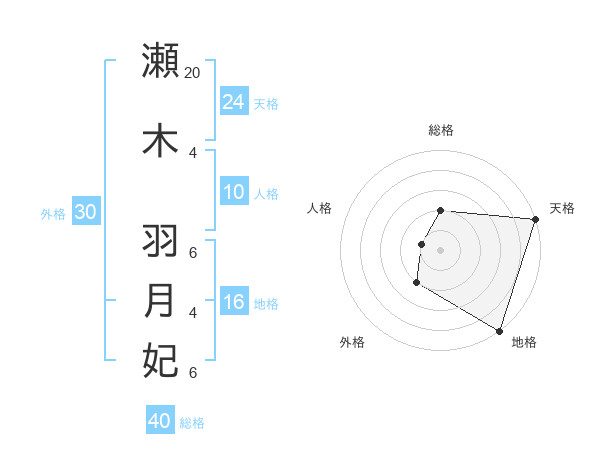 瀬木 羽月妃さんを姓名の画数から五運を鑑定
