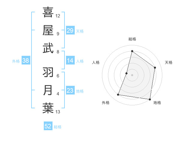 喜屋武 羽月葉さんを姓名の画数から五運を鑑定