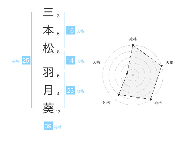 三本松 羽月葵さんの天格は16画の5点!