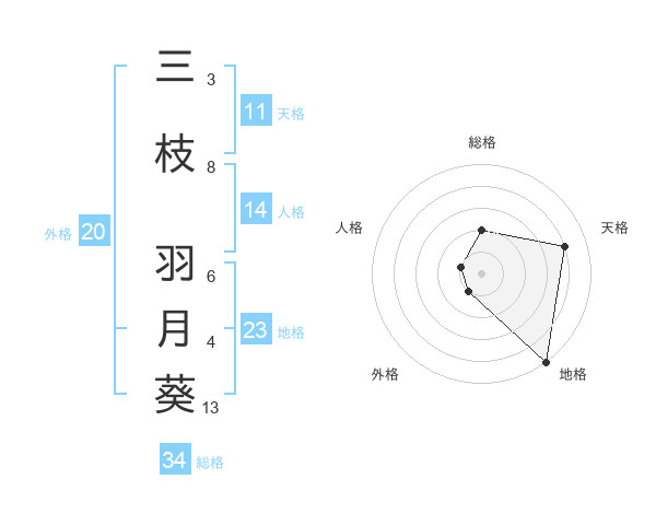 三枝 羽月葵さんを姓名の画数から五運を鑑定