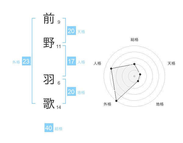 前野 羽歌さんを姓名の画数から五運を鑑定