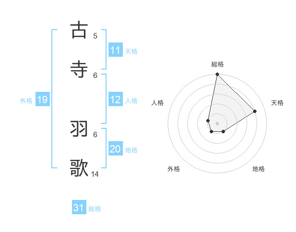 古寺 羽歌さんを姓名の画数から五運を鑑定