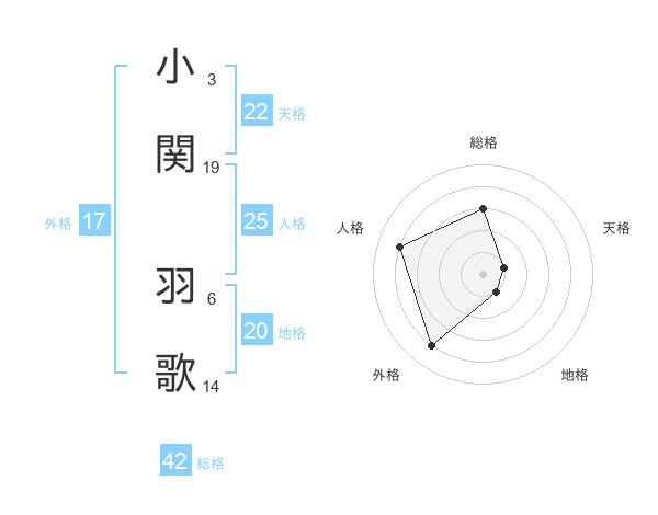 小関 羽歌さんを姓名の画数から五運を鑑定