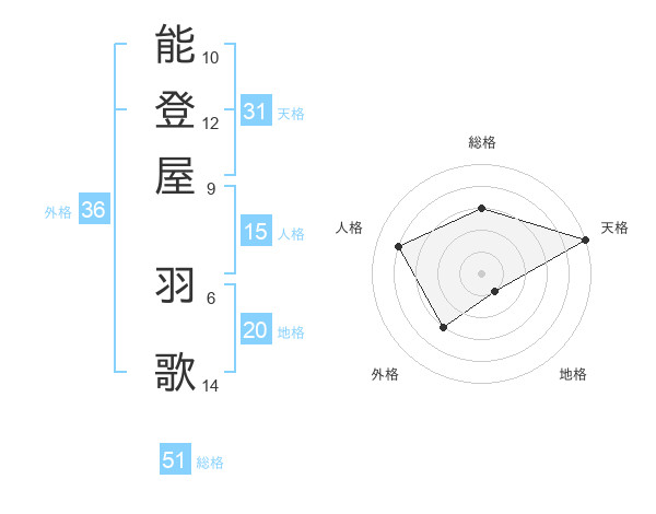 能登屋 羽歌さんの総格は51画の3点!