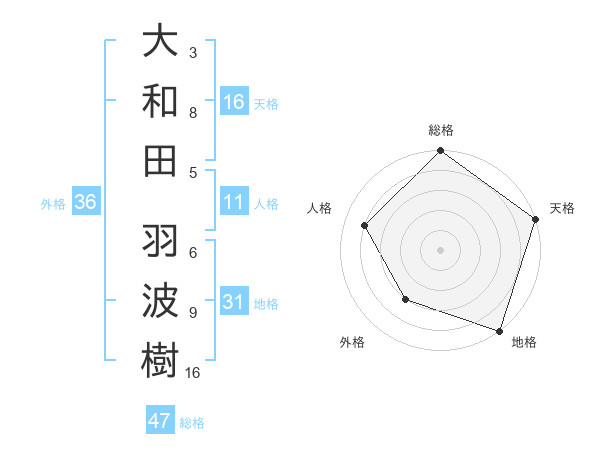大和田 羽波樹さんを姓名の画数から五運を鑑定