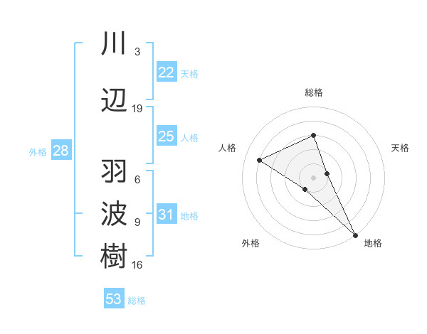 川辺 羽波樹さんの総格は53画の3点!