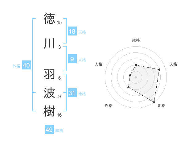 徳川 羽波樹さんの総格は49画の2点