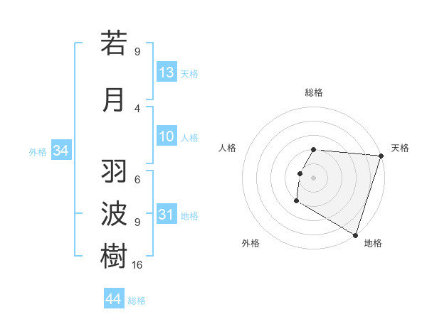 若月 羽波樹さんを姓名の画数から五運を鑑定