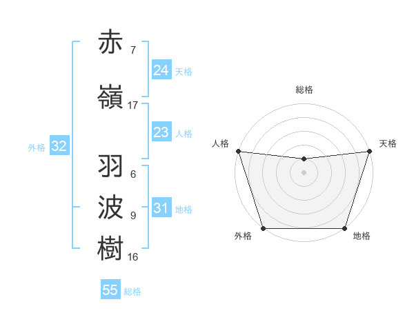 赤嶺 羽波樹さんの外格は32画の5点!