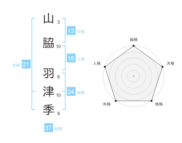 山脇 羽津季さんを姓名の画数から五運を鑑定