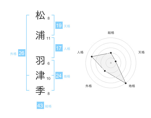 松浦 羽津季さんを姓名の画数から五運を鑑定
