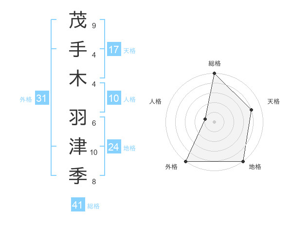 茂手木 羽津季さんを姓名の画数から五運を鑑定