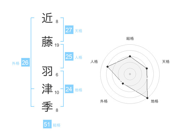 近藤 羽津季さんの外格は26画の2点