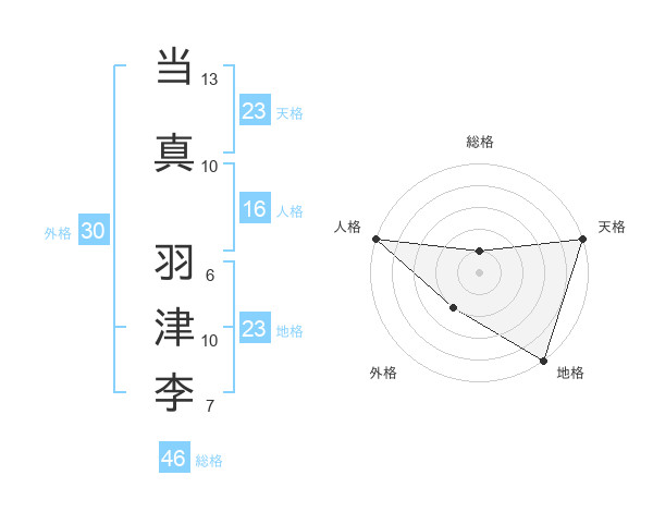 当真 羽津李さんの天格は23画の5点!