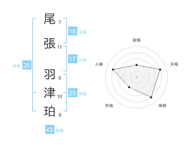 尾張 羽津珀さんを姓名の画数から五運を鑑定