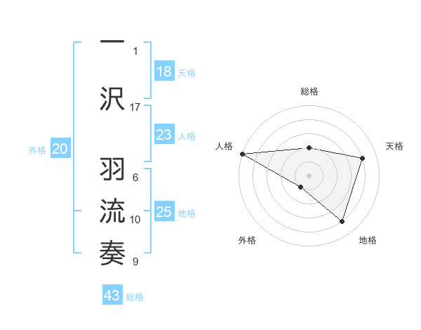 一沢 羽流奏さんを姓名の画数から五運を鑑定