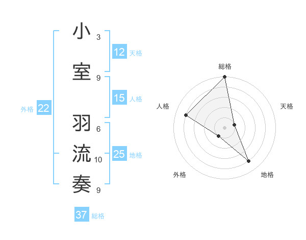 小室 羽流奏さんを姓名の画数から五運を鑑定