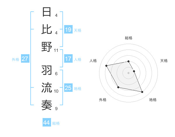 日比野 羽流奏さんの天格は19画の1点!