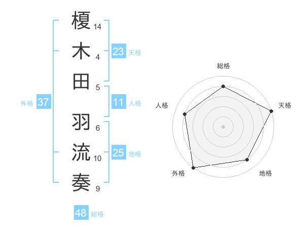 榎木田 羽流奏さんを姓名の画数から五運を鑑定