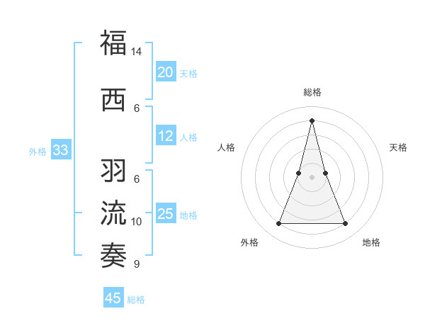福西 羽流奏さんを姓名の画数から五運を鑑定