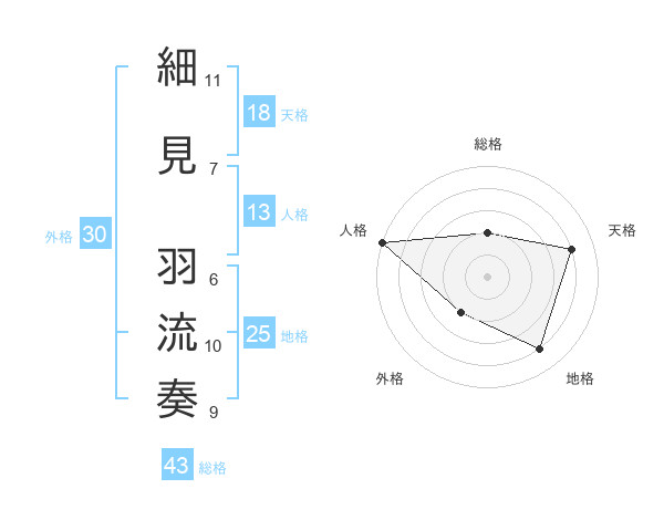 細見 羽流奏さんの総格は43画の2点