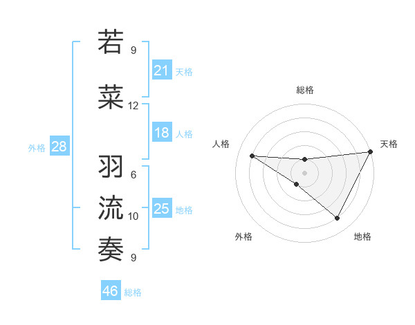 若菜 羽流奏さんの総格は46画の1点!