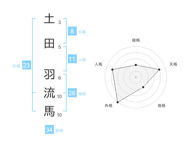 土田 羽流馬さんを姓名の画数から五運を鑑定