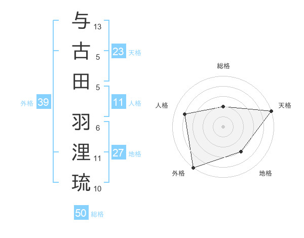 与古田 羽浬琉さんを姓名の画数から五運を鑑定