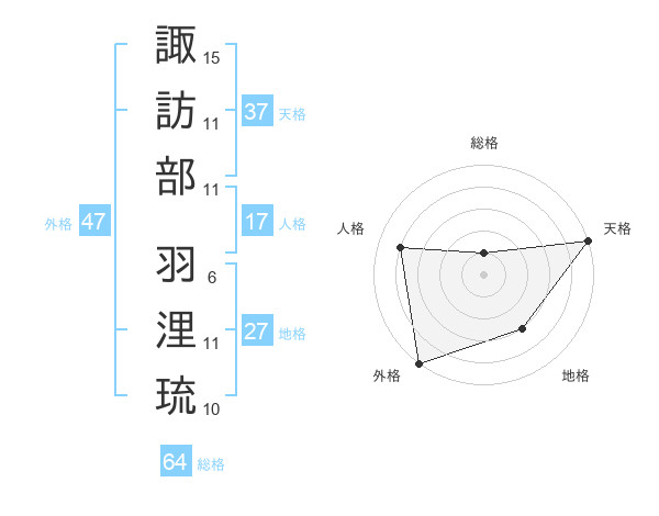 諏訪部 羽浬琉さんの外格は47画の5点!