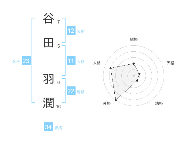 谷田 羽潤さんの外格は23画の5点!