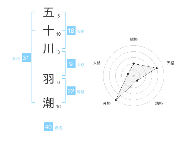 五十川 羽潮さんを姓名の画数から五運を鑑定