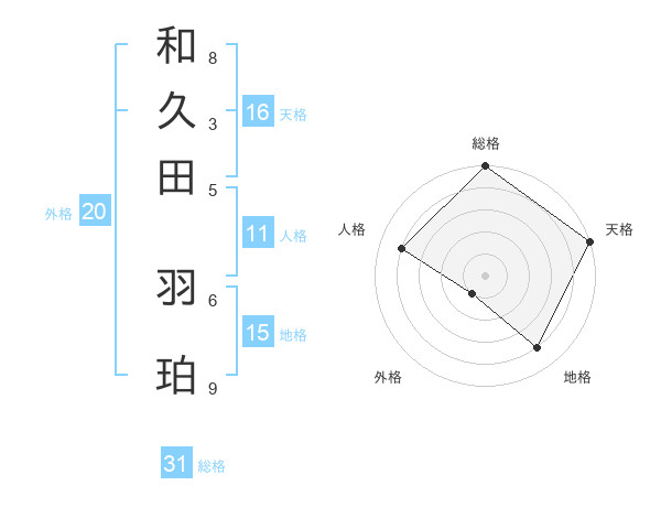 和久田 羽珀さんを姓名の画数から五運を鑑定