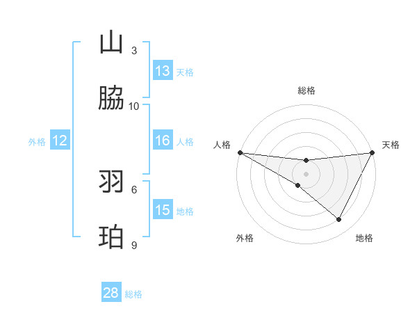 山脇 羽珀さんを姓名の画数から五運を鑑定